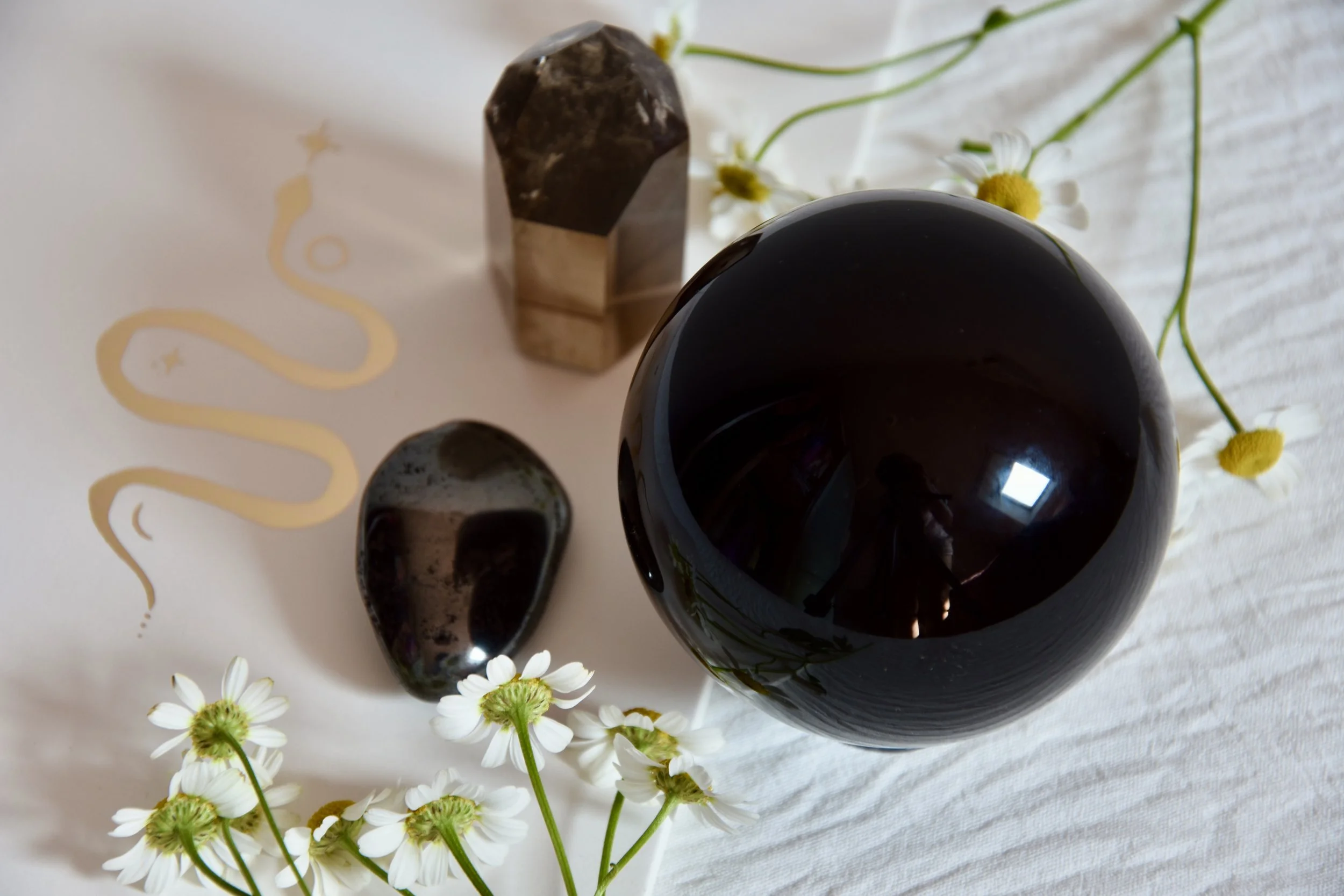 Zwarte obsidiaan: krachtige beschermer en aarder. Goed bij intense emoties.
